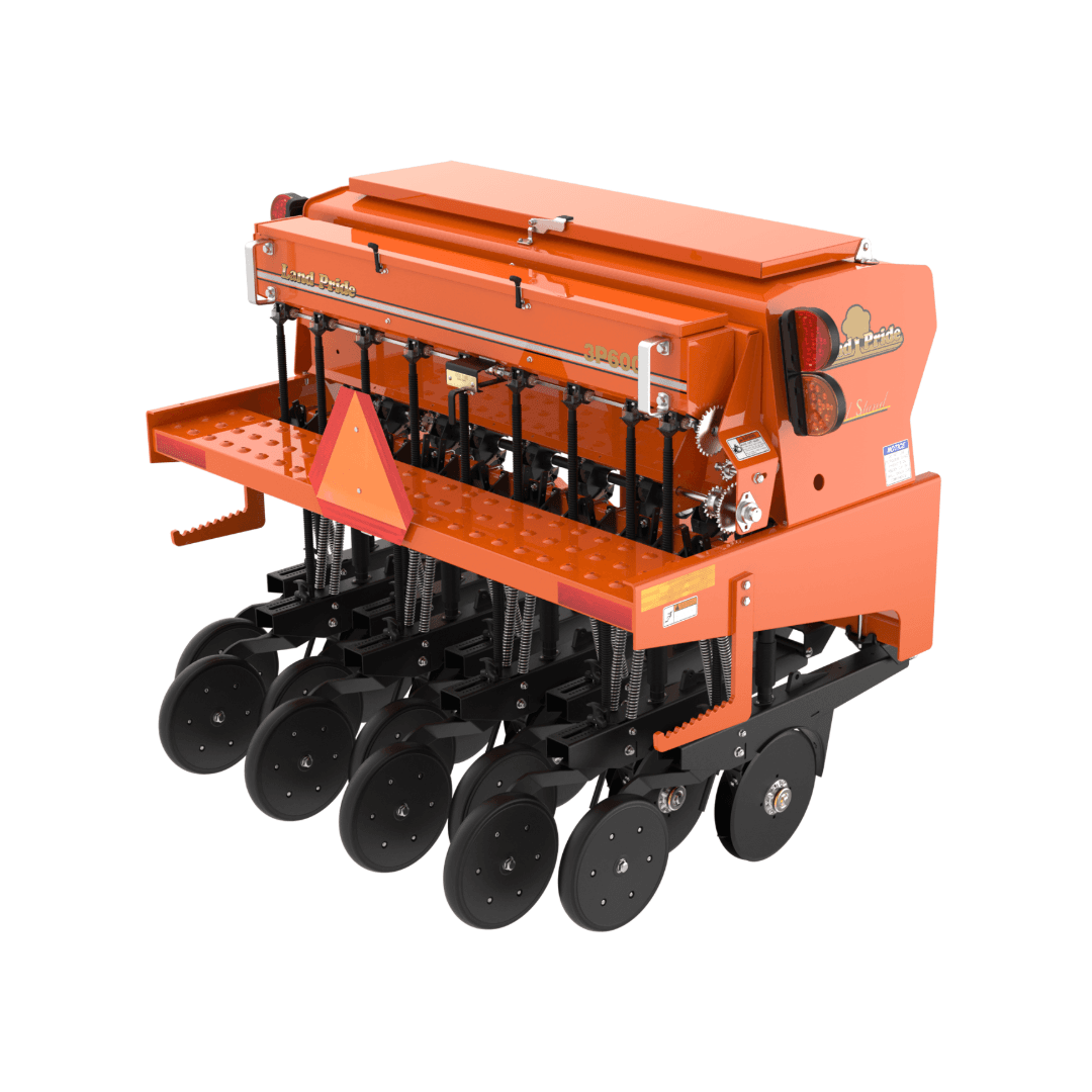 Similar to the 3P500, the Land Pride 3P600 is a 3-Point Min-Till drill. This 6′ unit is designed to get into smaller spaces like wooded areas, orchards, or vineyards. It excels when seeding into fully prepared and minimum tillage plots. End users can add the optional small seeds box and plant two different seeds simultaneously. Like the 3P500, the 3P600 is ground driven and features 4-speed gearboxes for fast seed rate changes. It is equipped with rugged 00 Series openers to provide accurate and consistent seed placement.