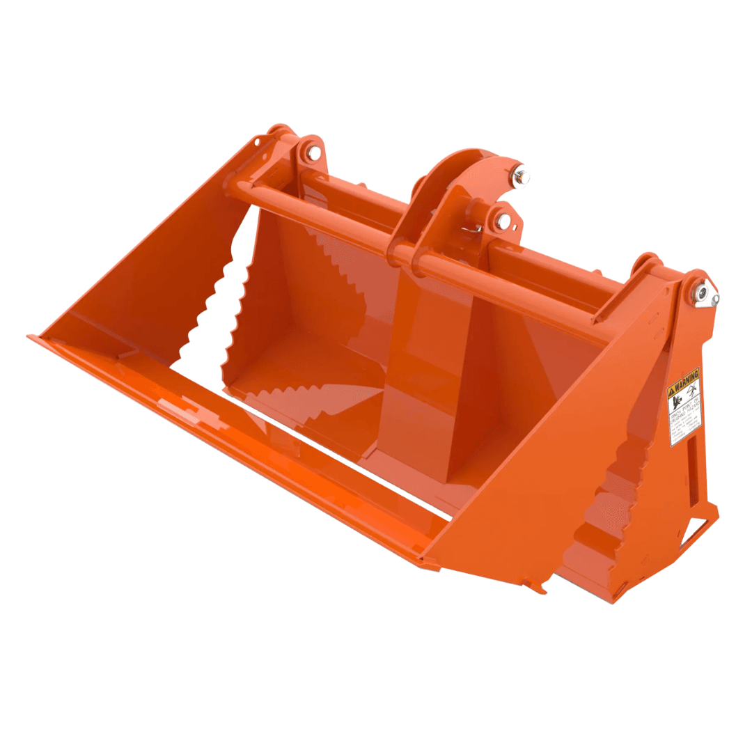 The CB0546 Combo Bucket, or 4-n-1 Bucket, allows you to dig, drag, doze, and clamp all with a single tool. This new bucket is specifically designed for Kubota BX80 Tractors and increasse the versatility of the front loader. A unique, patent-pending, single cylinder design keeps the weight down and allows the buckets to mount to the 2-lever quick attach plate on the tractor loader. It features a single 2.5 x 6 cylinder, greaseable jaw pivot points, 30” jaw opening, and 3 hardened cutting edges.