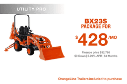 LX3520HSD 4WD TRACTOR W/FOLDABLE ROPS, R-TIRE 15-19.5 R14T GOODYEAR SST, F-TIRE 25X8.50-14 R14T GOODYEAR SST, STEERING STOP KIT, A 60" QA LIGHT MATERIAL BUCKET, A FRONT END LOADER FOR LX3520 AND LX4020, A 15 SERIES BOX SCRAPER, 60" WIDTH, AND A 12 SERIES UTILITY DUTY ROTARY CUTTER, 60" WIDTH